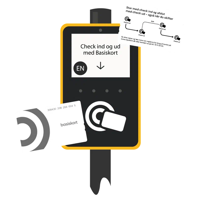 Basiskortet er et fysisk kort, som man bruger ved at checke ind og ud på nye gule standere – kaldet Checkpunkter.