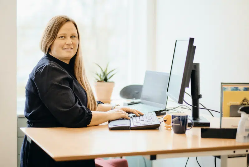 Jeg arbejder i Flextrafik, som er den del af Sydtrafik, der varetager behovsstyret kørsel for den enkelte kunde f.eks. sygetransport, handikapkørsel og Flextur. Min kerneopgave er at varetage debitorbogholderiet. Vores kørselsordninger har en egenbetaling, som jeg er med til at administrere, og så svarer jeg på spørgsmål fra vores kunder om betalinger og fakturaer.